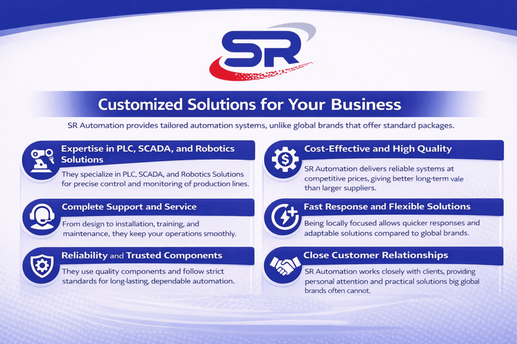 SR Automation shows its trustworthy vendors who help industries to build dependable PLC SCADA and robotics systems through their solution offerings.